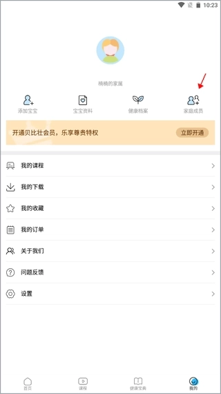 1、注册登录软件之后,点击【我的】模块右边的“家庭成员”设置选项。