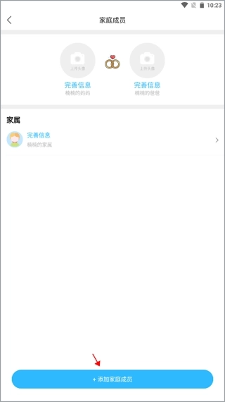 2、此时会发现需要完善妈妈和爸爸这两位家庭成员的信息,点击下方的“添加家庭成员”按钮即可。