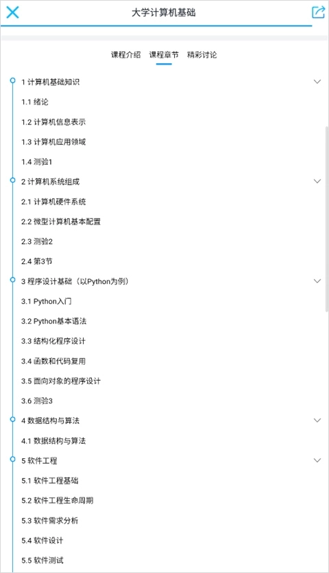 5、在下方还能查看课程的全部章节,而且除了学习课程内容外,每一章节都设有测验考试。