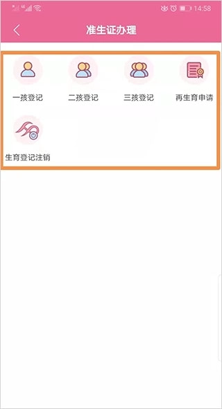 为育龄人群提供便捷的生育登记服务,同时支持他们查询并预约可开展婚检、孕前优生检查、孕13周建档、唐氏筛查等业务的相关服务机构。