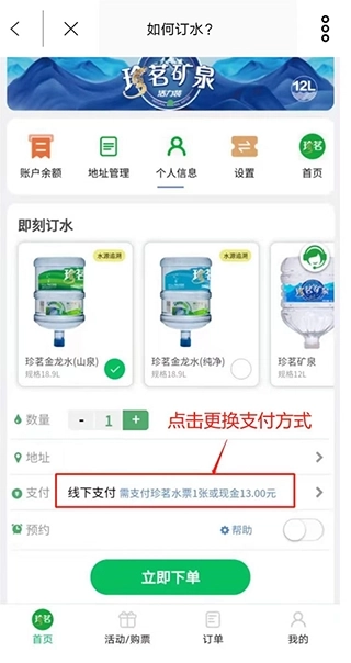 【预约订水】下班前提前预约订水,到家就能直接饮用,为您节省宝贵时间