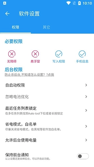 1、下载本站提供的Auto tool高级版,进入首页后能看到一个格外醒目的启动开关,点击该开关即可开启使用。