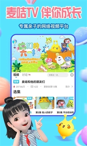 麦咭TV的用户能够借助这款软件观看各类亲子节目与动漫卡通视频。它不仅为用户提供了丰富优质的亲子内容和动漫卡通资源,还支持用户记录宝宝成长过程中的每一个精彩时刻,并且可以和孩子一同互动学习,进而助力宝爸宝妈们更好地与孩子增进感情。