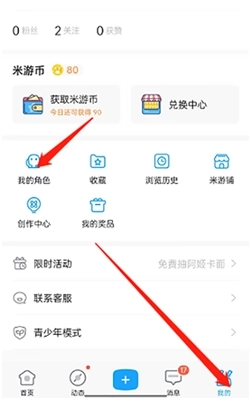 1、首先打开软件,找到下方的【我的】,然后点击【我的角色】。