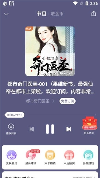 收听赚金币!金币快速提现!消遣赚钱两不误,听得越多赚得越多。