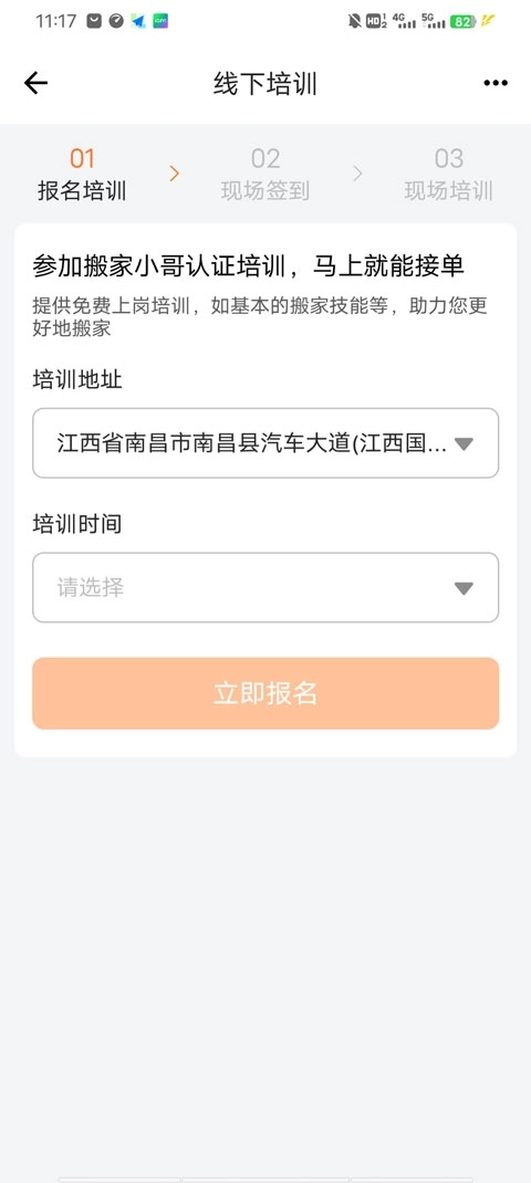 5、审核通过后,我们点击培训服务,预约你想要的线下培训时间,点击报名,最后完成培训即可接单。