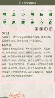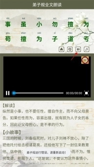 在全文朗读模式下,《弟子规》的所有发音、拼音注释以及解释等内容,都能在未连接网络的状态下进行朗读学习。