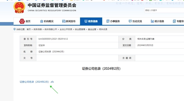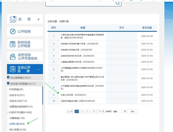 然后在打开的页面中找到监管对象这栏数据中的【证券公司名录】