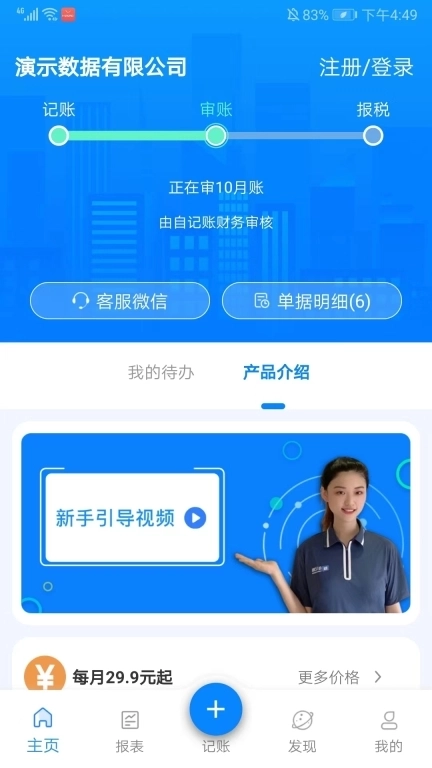 6、进入发现界面,还有视频教程、公司注册、审计评估、财务咨询等功能选项,