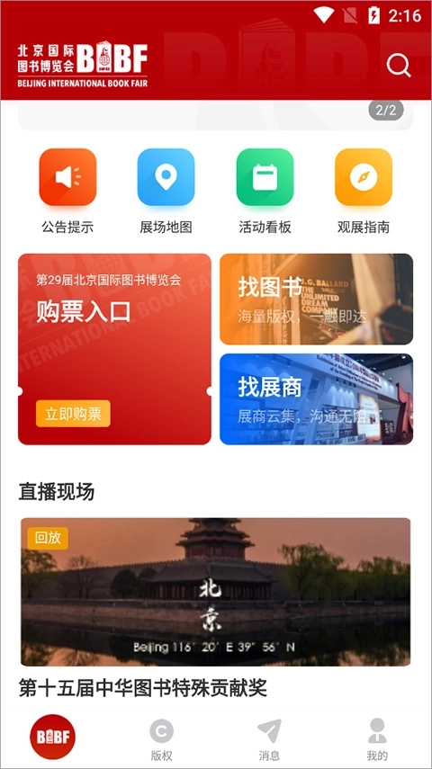 目前BIBF云书展APP的核心功能涵盖公告提醒、展馆地图、活动日程、观展指引、购票通道、展商检索、图书查询、版权采购、直播专区等板块。作为图书领域的线上互动平台,用户既能发布并分享行业资讯,也可预约北京国际图书博览会的线上线下展位,还能浏览图书、音像制品、电子出版物、数字出版产品及设计印刷类产品,尽享书海漫游之趣,有需求的用户可在此处下载使用。