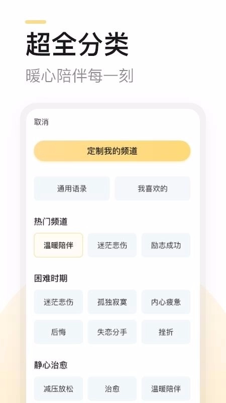 2、暖心整理出困难时期、静心治愈、个人成长等多类语录;
