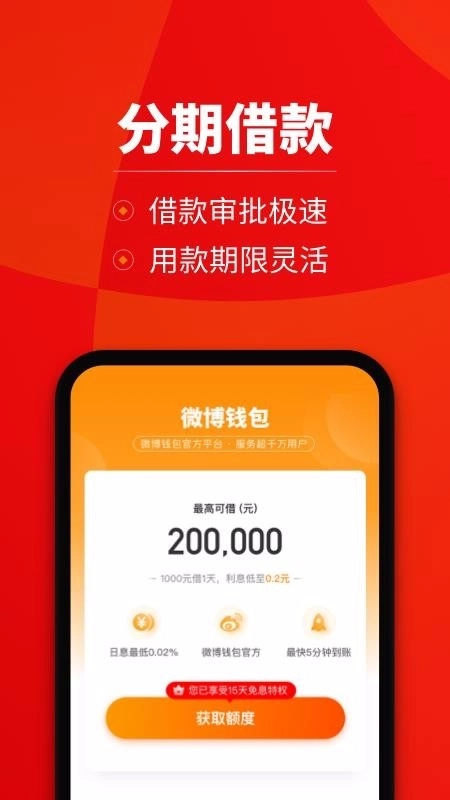 微博钱包app是官方推出的便捷借款工具,专注于为用户提供高额度、低利息且无需抵押的贷款服务。用户可在应用内自主申请借款,只要个人信用状况良好,就能轻松完成线上贷款流程。这款app拥有庞大的用户基础,许多人都选择在这里解决资金需求,是资金紧张用户的理想选择。它的放款速度非常快,申请通过后即刻到账,无需长时间等待。此外,无论借款金额大小,用户都能享受到超低利率,有效减轻还款压力。同时,微博钱包app的操作十分简便,只需几个简单步骤就能完成借款申请,即使是首次使用的新手用户也能轻松借到所需资金,及时缓解资金紧张的困境。
