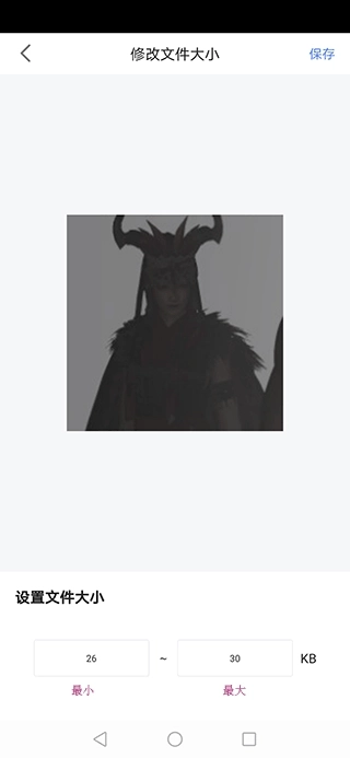 3、在左侧方框中填入最小kb数值,右侧方框中填入最大kb数值,随后点击右上角的保存按钮即可。