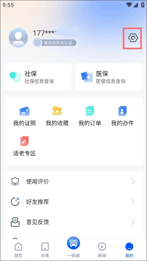 2、在登录后,同样在我的界面点击右上角的设置选项;