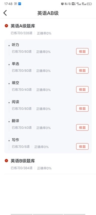 4、选址其中的题库,如听力;