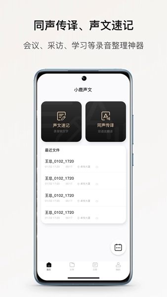 打开小鹿声文,一键就能完成录音与文字转写