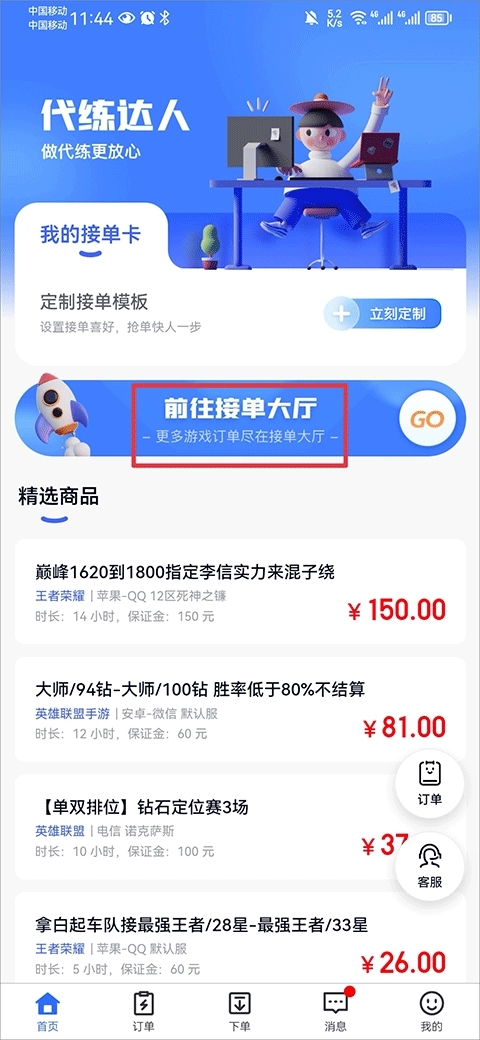 4、一些新的订单信息会不断的更新,更多的代练服务需求订单会不断的刷新。