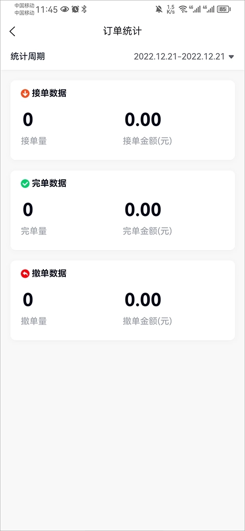 4、在订单统计界面中你可以随时查看自己的订单数据以及收益情况