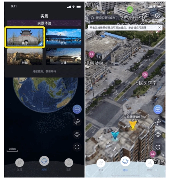 2、选择您想要观看的实景,并通过手势操作“放大/缩小”、“旋转”、“倾斜”,查看您想要的实景内容