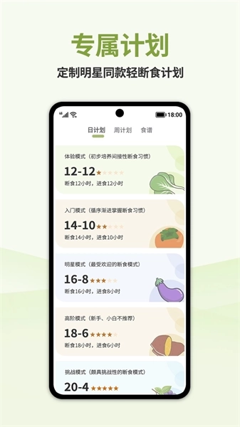 根据个人需求,定制专属的轻断食减肥计划,让减肥更有针对性,全面管理体重数据;