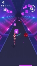 这款游戏的操作十分简易:从主界面选定歌曲后,只需跟着节奏的起伏长按屏幕左右区域,就能操控角色移动;借助角色手中的光剑,砍击路径上出现的节奏方块即可——节奏越快,方块的数量也会相应增多。为了提升挑战难度,游戏中还设置了各类障碍与爆炸物,会在途中阻碍你的行进。和常规音乐类游戏相同,游玩过程中达成的连击能带来积分加成,而积分正是评定玩家星级的核心依据。成功完成挑战后,玩家可以获得游戏币奖励,消耗这些游戏币不仅能解锁新的角色与武器,还能开启更多歌曲。感兴趣的朋友,不妨赶紧下载体验一番!