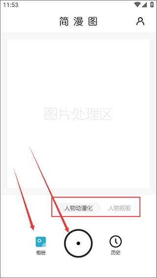 1、在本站下载并安装简漫图app,打开软件后完成账号注册与登录操作;该应用具备人物动漫化和人物抠图两项功能,可根据需求选择对应功能,随后点击拍摄按钮或直接从相册中选取照片即可。