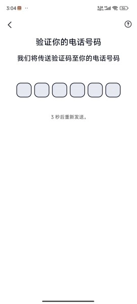 2、输入你正在使用的号码,并且你会接收到一条验证码。