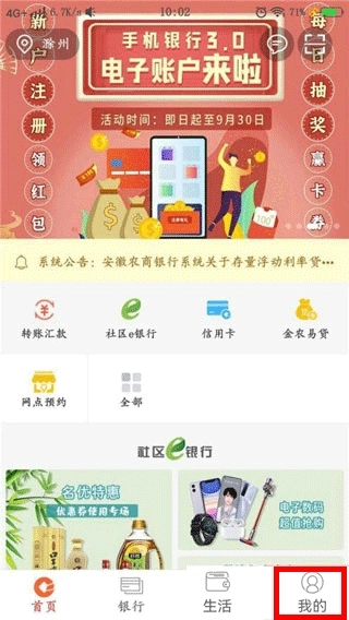 1、打开安徽农金手机银行最新版,点击右下角的【我的】。