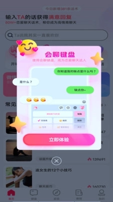 会聊输入法app堪称聊天必备的实用工具,有了它,即便不擅长聊天的用户也无需发愁——软件会提供实用的话术技巧,教你如何巧妙回复;当你不知如何开启话题时,还有丰富的聊天话题可供选择,欢迎免费体验。