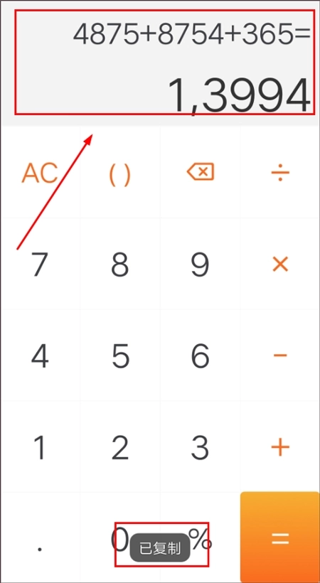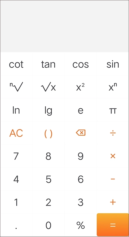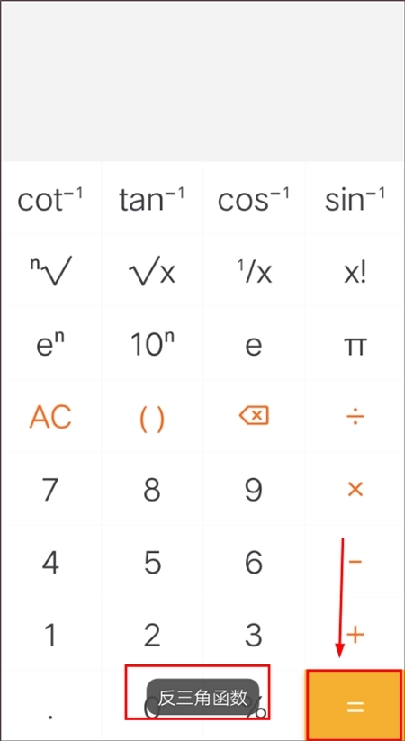 1、在键盘区域向左滑动,即可进入科学计算器的计算界面;