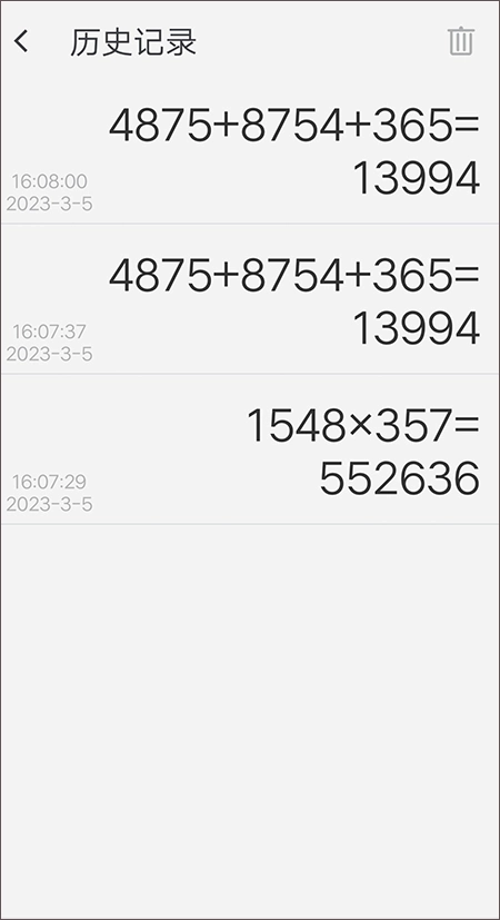 3、点击计算结果进入历史记录界面,点击手机返回键到计算界面;