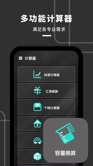 3. 使用单位转换功能时,能轻松完成面积、容积、温度、长度等单位的转换。