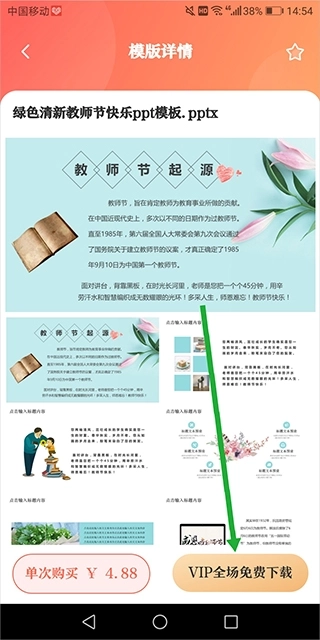 也可以直接进入模板详情页面,点击底部右下角的【VIP全场免费下载】按钮。