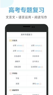 这个软件给不少高中生带来了便利,在平台上学习语文课程会十分轻松,平台还能推荐一些优质的精品语文课程,无论是文言文讲解还是各类课程分析,都能通过平台学习,大家也可以进入作文专项练习板块,各种写作技巧和方法都能在平台里轻松掌握。