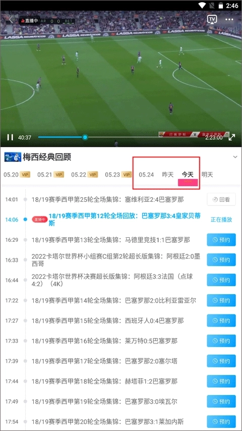 你可以看到左侧标有vip字样的日期内容需要付费观看,后面的则是免费的,差不多能观看三天的回看内容。