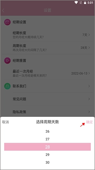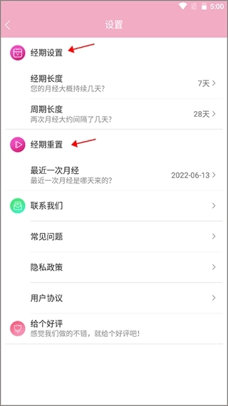2、可以重新设置经期时间以及重置经期。