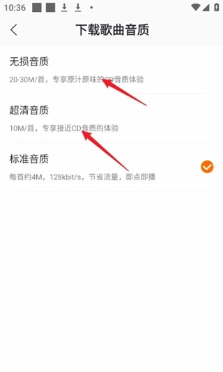 4、在当前页面,可以按个人需求选择无损音质、超清音质等