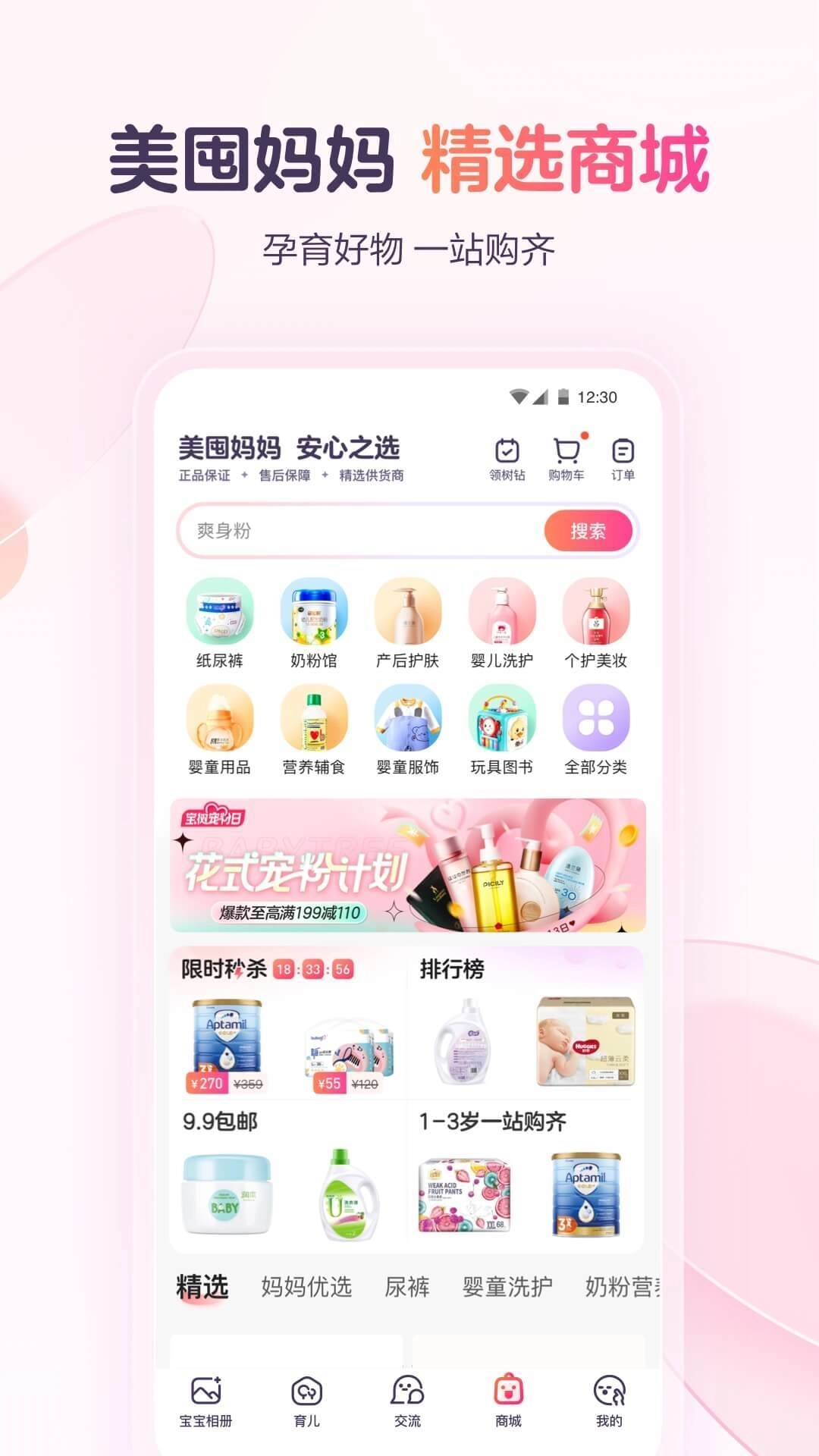 2、母婴限时特卖、收罗全球好货,海淘正品。由于爱,所以严苛。