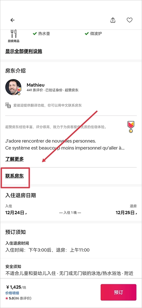 爱彼迎app最新版怎么预订?怎么联系房主?
