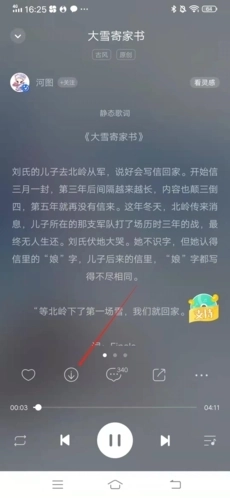 1、首先进入想要下载的歌曲页面,点击下方的“↓”按钮;