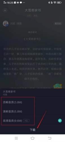 2、在弹出窗口中,选择想要下载歌曲的质量,最后点击“下载”,这样就可以将歌曲下载到本地了。