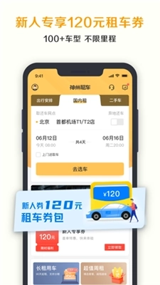 神州租车app为用户提供便捷的租车服务,平台上有大量优质车辆可供挑选,车型丰富多样,用户还能自由选择取车与还车地点,轻松享受便捷的自驾出行体验。2026年推出的神州租车安卓版,新人注册即可领取专属红包优惠,租车费用透明清晰,所有用户都能享受免押金服务,有租车需求的朋友,不妨下载神州租车app体验一下!