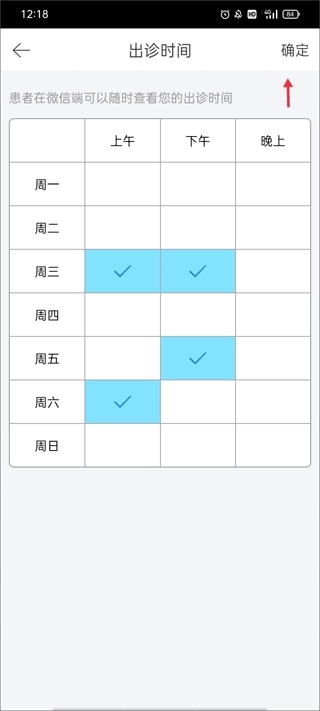 (2)勾选你要出诊的时间并进行确定。