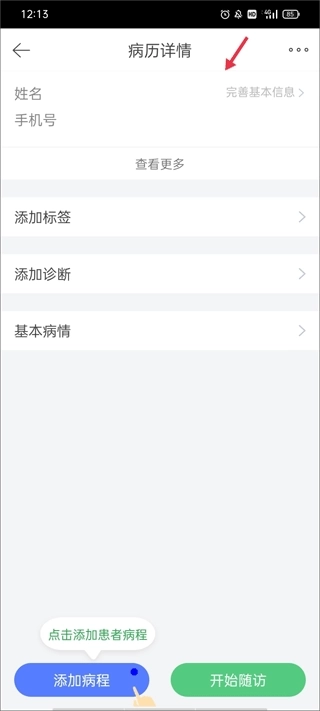 (2)填写病历的详情信息,完善病人的基础信息。