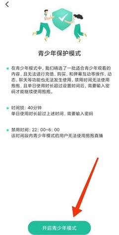 4、点击【开启青少年模式】即可。
