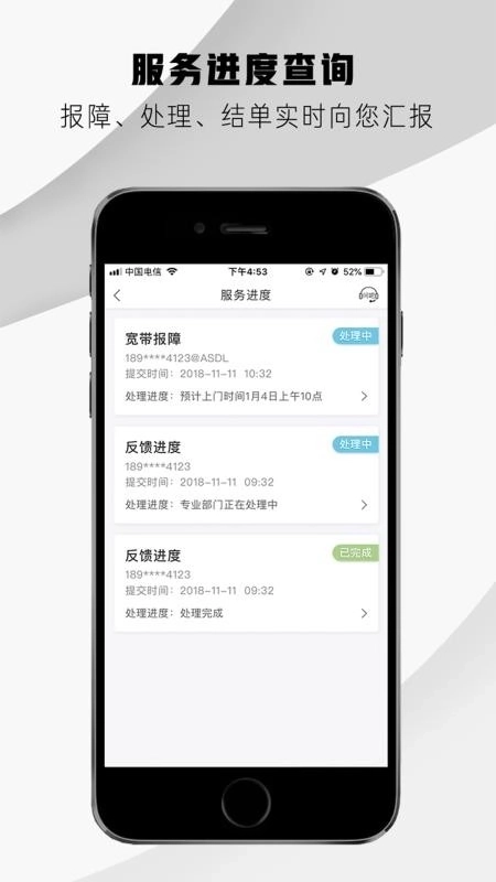 5、服务进度查询:报障、处理、结单实时向您汇报;