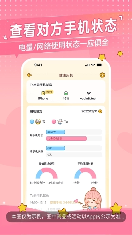 在这款APP里,系统会自动记录用户的使用时长,情侣间的甜蜜瞬间都能被直接留存下来。漫长的恋爱过程中,那些点点滴滴、一举一动无需刻意去保存,软件能以旁观者的身份,见证专属于你们的爱情故事。