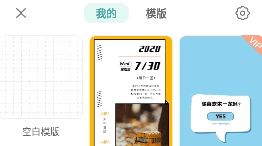 3、进入后,可以看到【我的】和【模板】,【我的】里保存的是自己创作的模板,新手可以先在【模板】中选择已有的模板