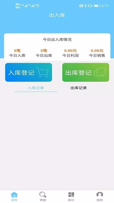 进入应用首页后,就能看到所有的入库记录和出库记录信息。