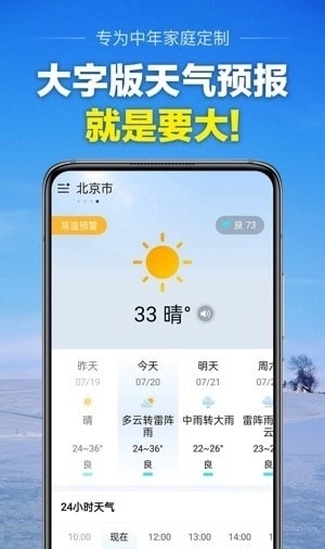 采用简洁的大字大图标设计,不仅易于阅读,还能让用户快速获取天气信息。